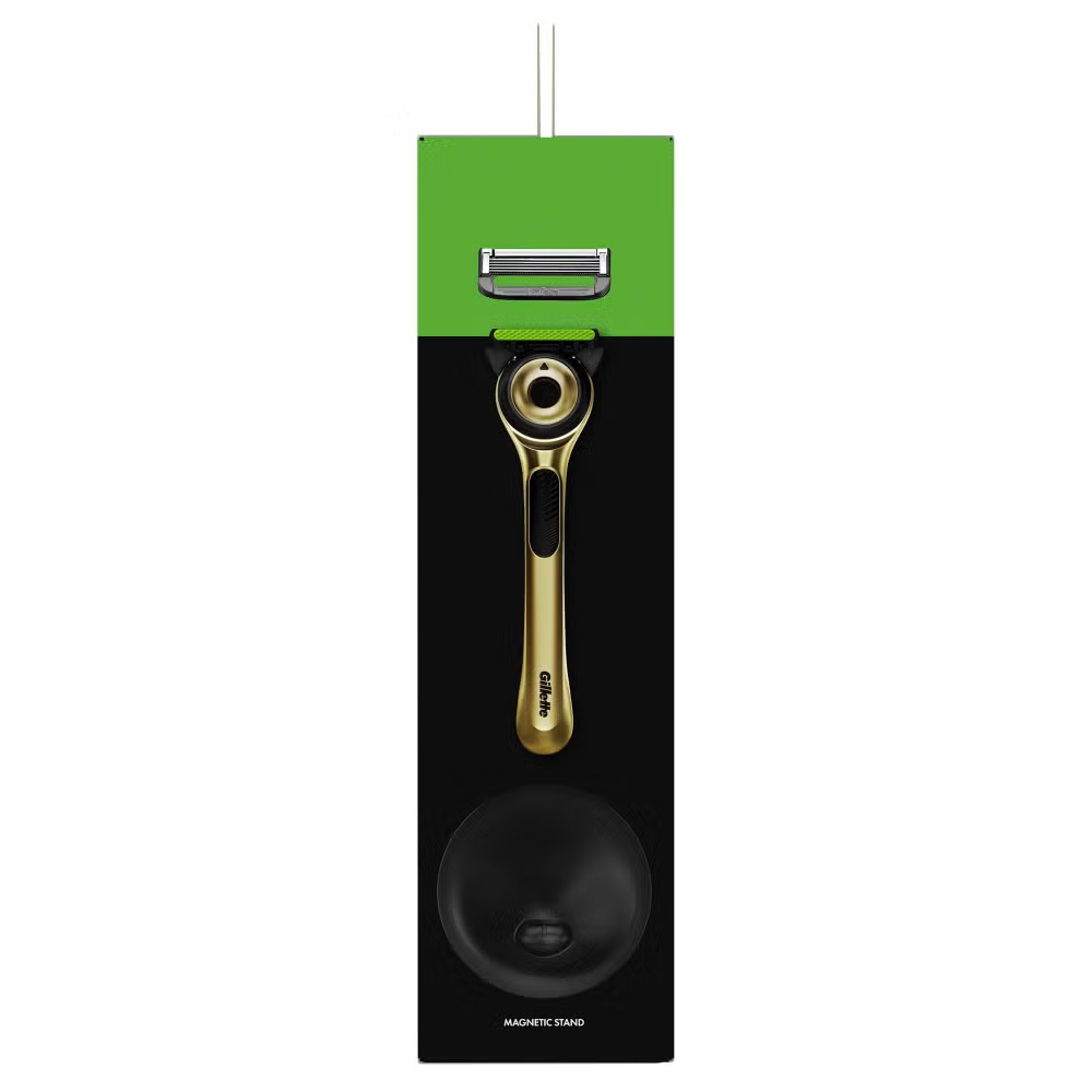 This Gold Edition Gillette Labs exfoliating razor with a magnetic stand will help you to shave like a champion. Like all Gillette exfoliating razors, the handle helps to remove dead skin and debris from your face before the razors pass, thereby ensuring a smooth, efficient shave that’s fit for a champion. This new Gillette razor is among the world’s first that has exfoliating technology built into the handle, helping men to shave effectively while avoiding the need to exfoliate separately beforehand.