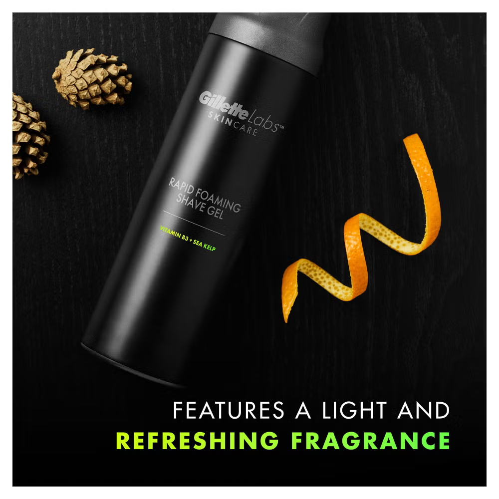 Designed to make shaving less of a chore and make your regular grooming regime enjoyable, quick and convenient, the Gillette Rapid Foaming Shave Gel by Gillette Labs, helps to cool and soothe the skin when it is applied. It will also help to protect the skin while shaving. Designed for use with Gillette Labs razors as well as other types of razor, this shaving gel for men is made without alcohol or dyes. To use it, all you need to do is simply apply it, shave and then rinse it off afterwards. To experience a quick, easy and refreshing shave, use this shaving gel with the Gillette Labs razor with Exfoliating Bar or to obtain the feeling of a hot towel shave, use it with the Gillette Labs Heated Razor.