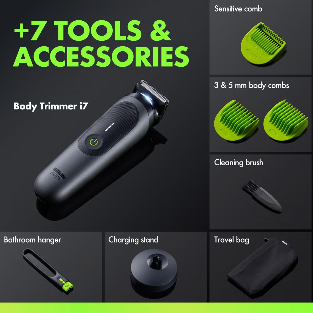 Built around the GilletteLabs i7 Body + Intimate Hair Trimmer, this set is designed for confident trimming for men-including sensitive intimate areas-with SkinFirst cutting technology for up to 0% nicks and cuts with the sensitive comb*. An LED Spotlight helps you see what you’re doing with more precision, while Autosense technology adapts power to hair density for consistent results. To prep and refresh skin before (or between) grooming sessions, the bundle also includes the GilletteLabs Body + Intimate 2‑in‑1 Shave Cream & Cleanser (177 ml), a dermatologist‑tested formula that cleanses and adds a protective layer for more glide and less tug and pull (vs. water alone).