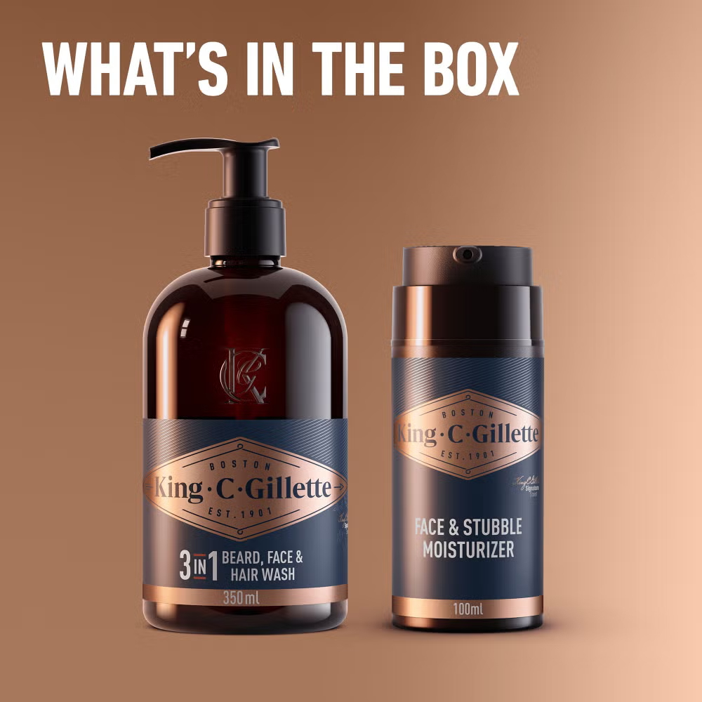 King C. Gillette Beard Care Kit with 3-in1 Beard, Face & Hair Wash