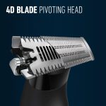 Gillette trimmer head close-up, highlighting the full metal 4D blade that pivots to reach both long and short hair.