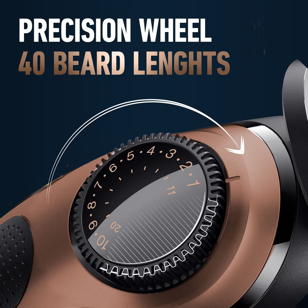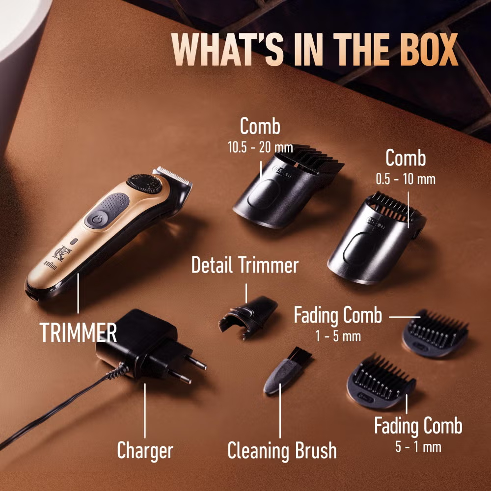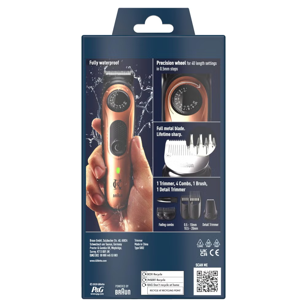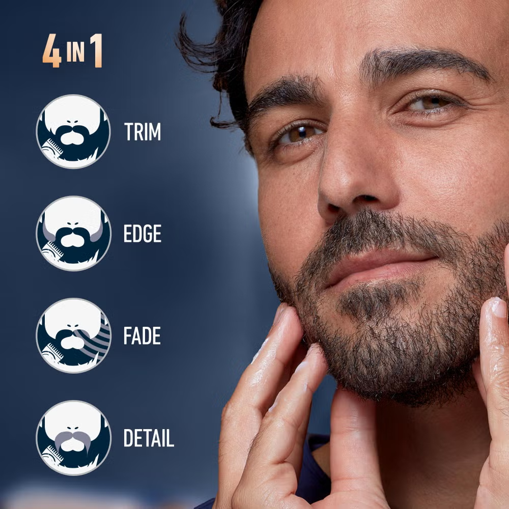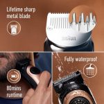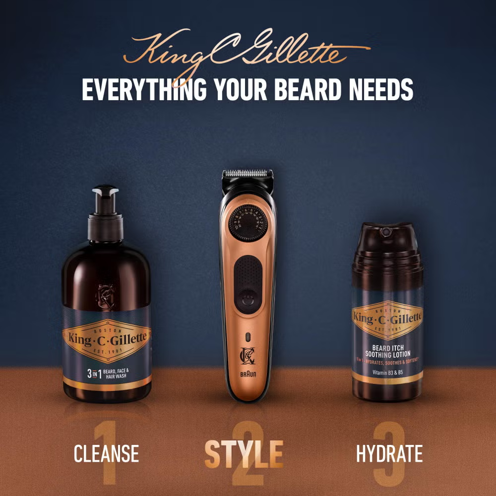 This beard trimmer Pro with a brush from the King C. Gillette range of beard trimmers offers everything you need for professional standard trims and facial hair styling. The full metal head with self-sharpening blades benefits from auto-sensing technology which adjusts the power delivered to the blades up to 13 times per second. In short, if you want to ensure constant cutting performance from a beard trimmer for men that’s been designed for precision grooming, then this King C. Gillette beard trimmer is for you. The two supplied combs allow for multiple length settings, from 0.5 mm to 21 mm, and the beard trimmer’s cleaning brush makes maintaining your unit a breeze.